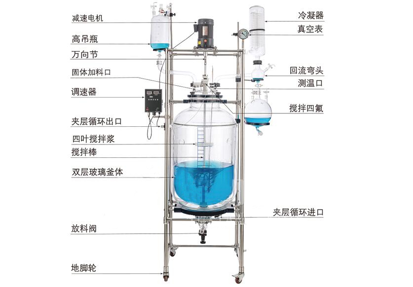 雙層玻璃反應(yīng)釜是通過雙層反應(yīng)釜夾層,注入恒溫的(高溫或低溫)熱溶媒體或冷卻媒體,對反應(yīng)釜內(nèi)的物料進(jìn)行恒溫加熱或制冷,并且可以提供攪拌。物料在反應(yīng)釜內(nèi)進(jìn)行反應(yīng),并能控制反應(yīng)溶液的蒸發(fā)與回流,反應(yīng)完畢,物料可從釜底的出料口放出,操作極為方便。是現(xiàn)代化學(xué)小樣,中樣實(shí)驗(yàn)、生物制藥及新材料合成的理想設(shè)備。