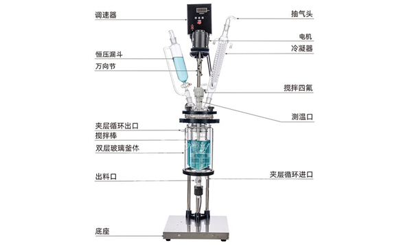 雙層玻璃反應釜可以實現實驗的一機多用,滿足不同實驗的多種需要。它可以進行:真空攪拌反應,高溫、低溫反應,恒速運轉混勻反應,蒸餾、回流、濃縮反應,負壓操作,分液功能,可以通過組裝精餾柱進行精餾,可以根據具體的要求組裝成玻璃反應釜生產線。
